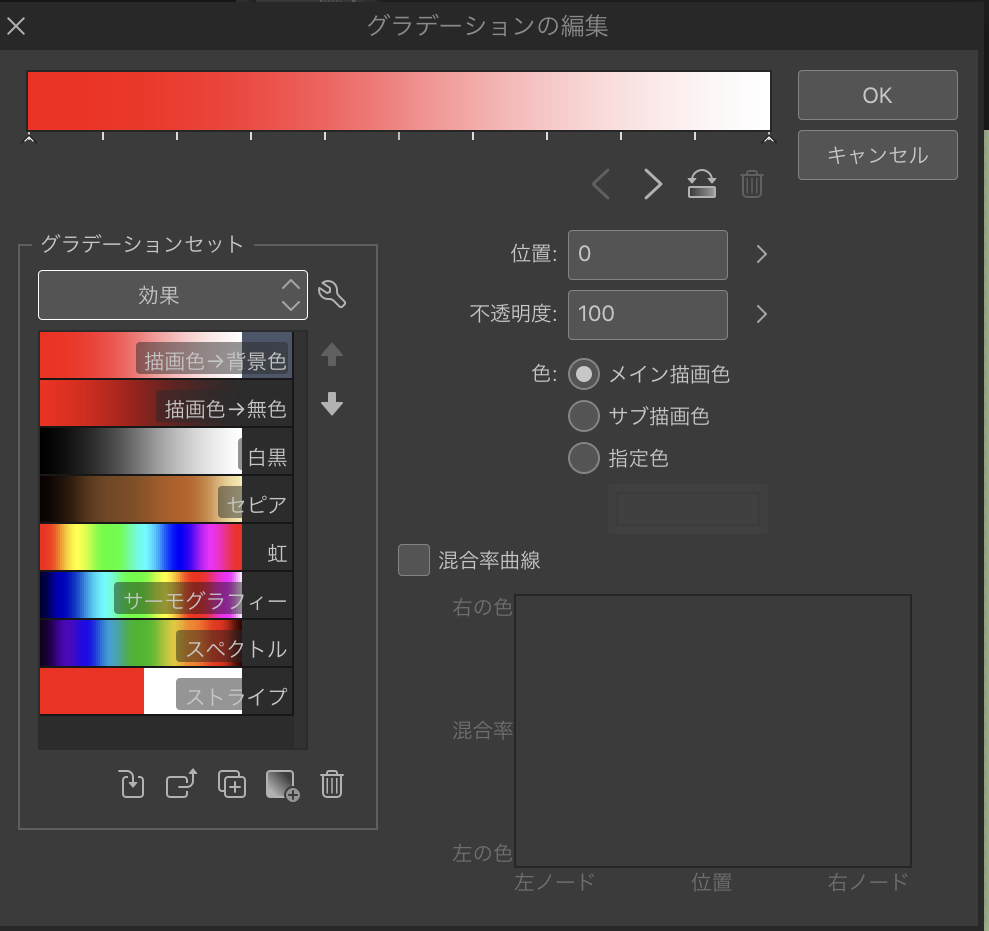 グラデーションの全ての編集が元に戻るので注意しよう。